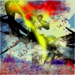 LeinwandKunst.Farbe in rot- blau- schwarz- gelb.Besonders großes Bild bis 140 X 140!